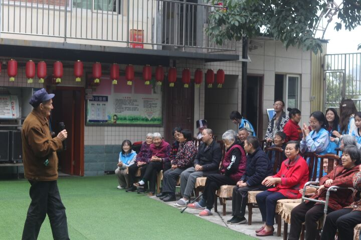 活动开始前,志愿者们都在积极的排练节目,帮忙搬椅子,陪爷爷奶奶聊天,很快和爷爷奶奶熟悉了起来。活动第一项,由志愿者为爷爷奶奶带来了精心准备的歌词节目《最炫民族风》《我爱你中国》,还有舞蹈节目《舞蹈串烧》,热情的爷爷奶奶用手打着节拍,满怀笑容地观看节目表演。志愿者们用歌声感染老人们,老人们用笑容温暖志愿者。活动第二项,我们邀请老人们上台表演节目,爷爷奶奶们热情高涨,积极举手上台表演,用歌声唱响属于他们的时代记忆。活动的第三项,志愿者们为爷爷奶奶准备了击鼓传花、传递乒乓球等趣味游戏,在志愿者的引导和陪伴下,爷爷奶奶们都积极地参与到游戏中,流露出了如孩童般的各种“小情绪”,会为了游戏的胜利欢欣鼓舞,也会为了游戏的失误惋惜不甘。志愿者们和老人们相处十分融洽,每个人都积极参与到活动当中,每个人都沉静在欢乐的氛围当中。活动的最后,志愿者们和老人们依依不舍的彼此告别,并一起留下了珍贵的合照。