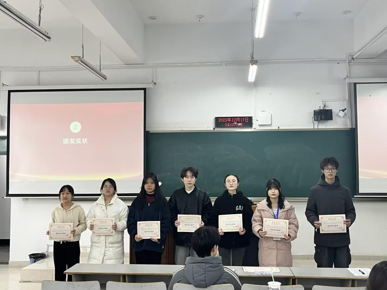 第二项议程:颁发奖状。由三位会长给各位获奖同学颁发荣誉证书。