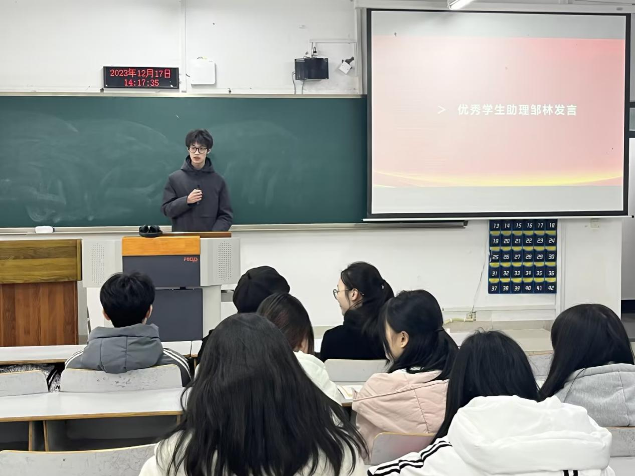 第三项议程:优秀代表发言。优秀员工助理代表邹林,优秀部长代表刘松让、董升达,优秀干事代表秦子研、程琪媛,均对这一学期的工作进行了总结,分享了自己在工作中的经验和心得,并勉励在场各位保持优良作风,延续优秀习惯。同时,完善自己的不足之处。