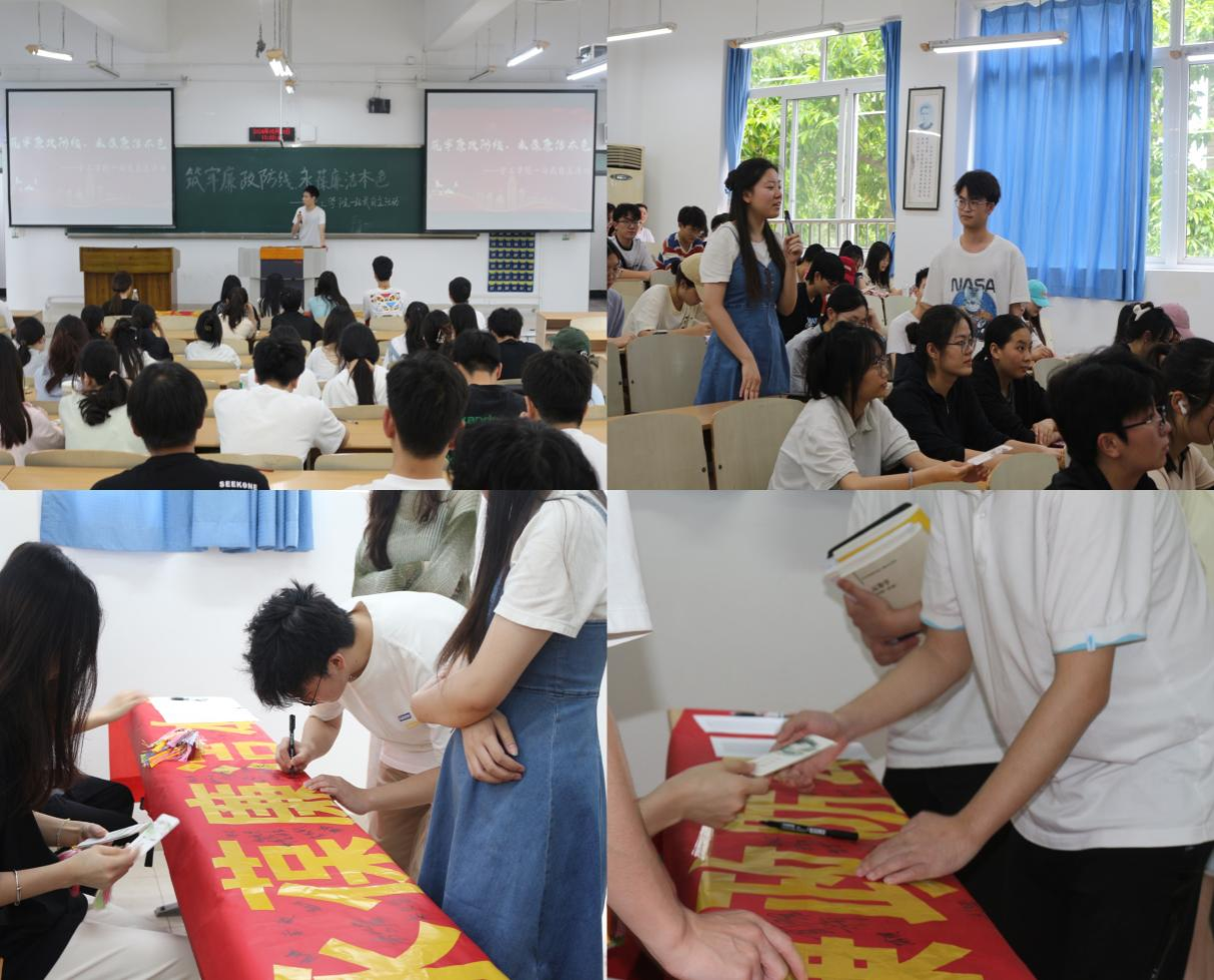活动伊始,84名入党积极分子齐聚一堂,共同观看了两部精心制作的清廉主题微电影。影片内容深入浅出,既有引人入胜的情节,又不乏深刻的教育意义。观影结束后,三位入党积极分子代表纷纷上台分享了自己的观后感。他们表示,通过影片的观看,更加坚定了自己树立廉洁意识、拒绝腐败的决心,并深刻认识到腐败对国家和社会造成的巨大危害。随后,活动进入高潮环节。工作人员为每位入党积极分子发放了纪念书签,以此提醒他们时刻铭记自己的廉洁承诺,保持清正廉洁的品格。紧接着,在热烈的氛围中,84名入党积极分子和12名工作人员共同在横幅上签下了自己的名字。这些密密麻麻的黑色字迹不仅是对廉洁自律的庄重承诺,更是对构建风清气正社会的坚定信念。