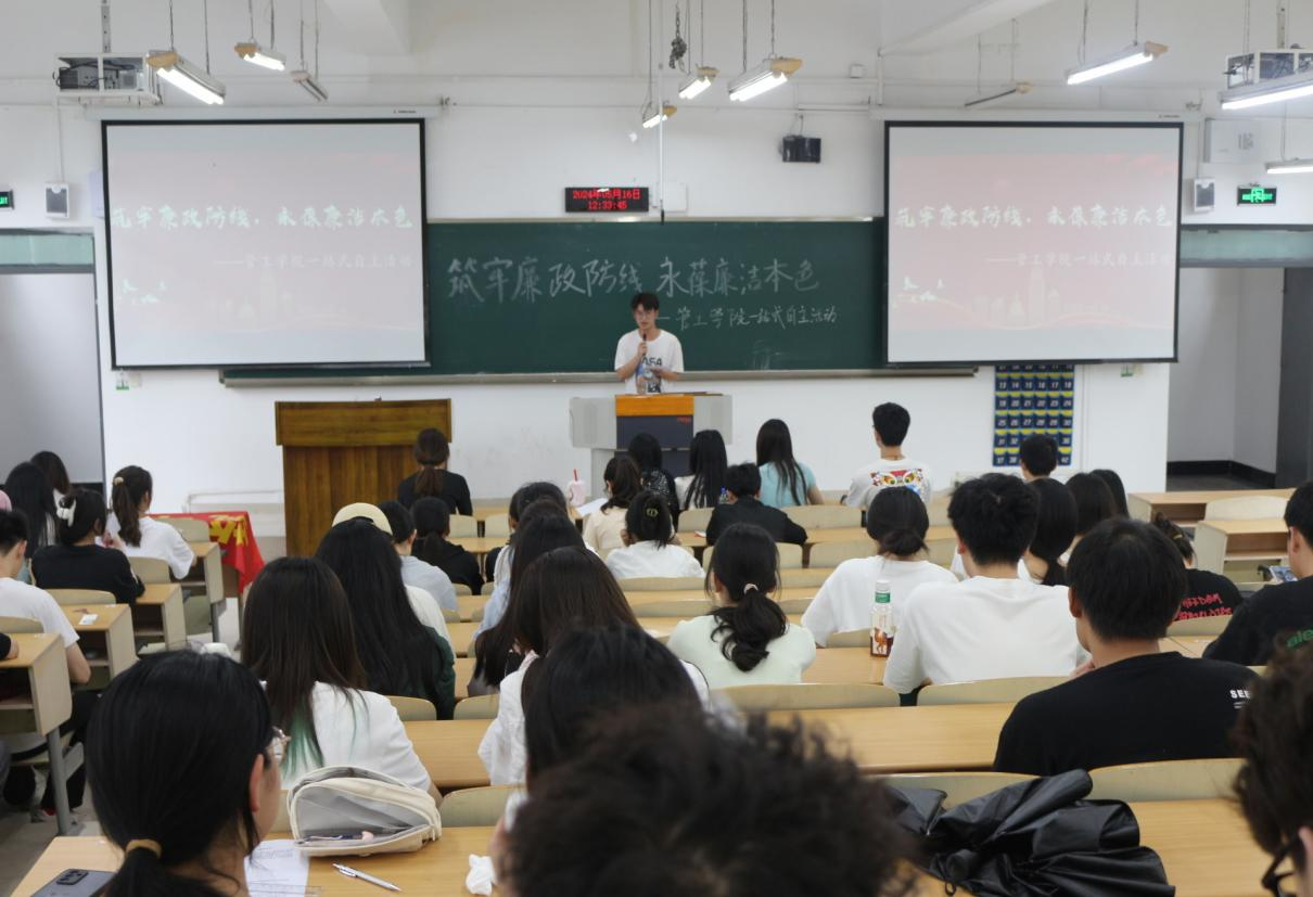 为深入推进党风廉政建设,营造风清气正的校园氛围,管工学院于2024年5月16日中午12:30在博智楼07206教室成功举办了“筑牢廉政防线,永葆廉洁本色”活动。此次活动通过微电影展示和横幅签名的方式,旨在引导同学们深刻认识廉政建设的重要性,形成对腐败现象的零容忍态度,并激发他们主动弘扬廉洁文化的热情,助力学院“一站式”员工社区建设。