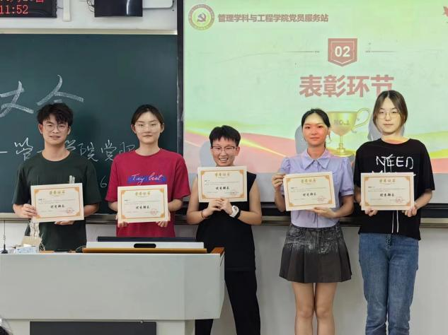 随后,大会进入表彰环节。经过严格的评选,张雯婷、赵荣、张铭靖、程凤麟、易增淇五位部长凭借在部门工作中的出色表现,荣获“优秀部长”称号。他们不仅在部门工作中表现出色,更在推动部门乃至整个党员服务站的发展中发挥了重要作用。他们用智慧和汗水,为党员服务站注入了新的活力。