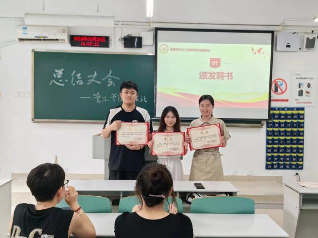 大会伊始,首先进行了颁发聘书环节。夏诗意、周立聪、杨丽红、张雯婷、赵荣、张铭靖、程凤麟、易增淇、曾雪莲、徐国睿、周扬、粟永洁、马喜伟同学任满一年,荣获任职聘书。这份荣誉不仅是对他们过去一年工作的肯定,更是对他们在党员服务站中发挥重要作用的认可。他们用自己的实际行动,诠释了责任与担当,为党员服务站的发展贡献了自己的力量。