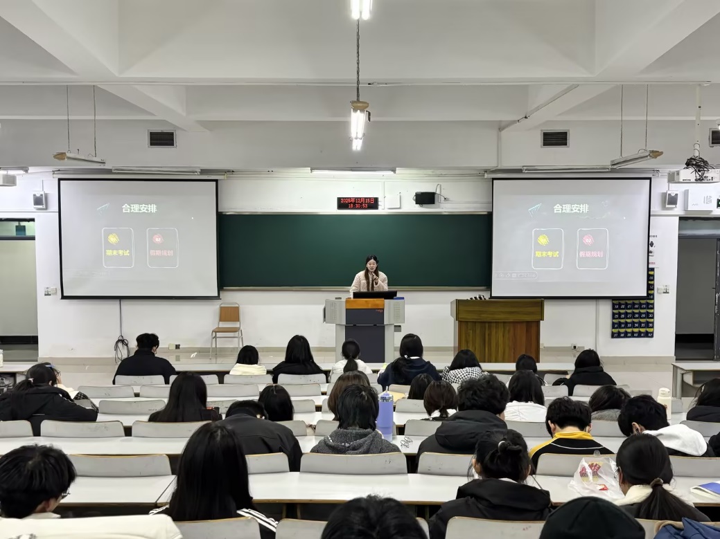 12月14日晚,陈雨轩学长向25级物流管理专业的师弟师妹开展了“凝心聚力,高效冲刺——四级与期末备考导航”专题班会。四级备考聚焦听力、阅读、写作翻译三大板块,分享精听泛听结合、计时训练、模板活用等技巧;期末备考倡导梳理大纲、制定倒计时复习计划。同时,集中分享番茄工作法、费曼学习法、思维导图等实用工具,推荐优质在线学习平台,并邀请高年级学长学姐分享错题本利用、宿舍协作学习等实战经验。增设心态调适环节,提供规律作息、适度运动、建立支持系统等疏压方法,解答复习时间平衡、考前失眠等常见困惑。