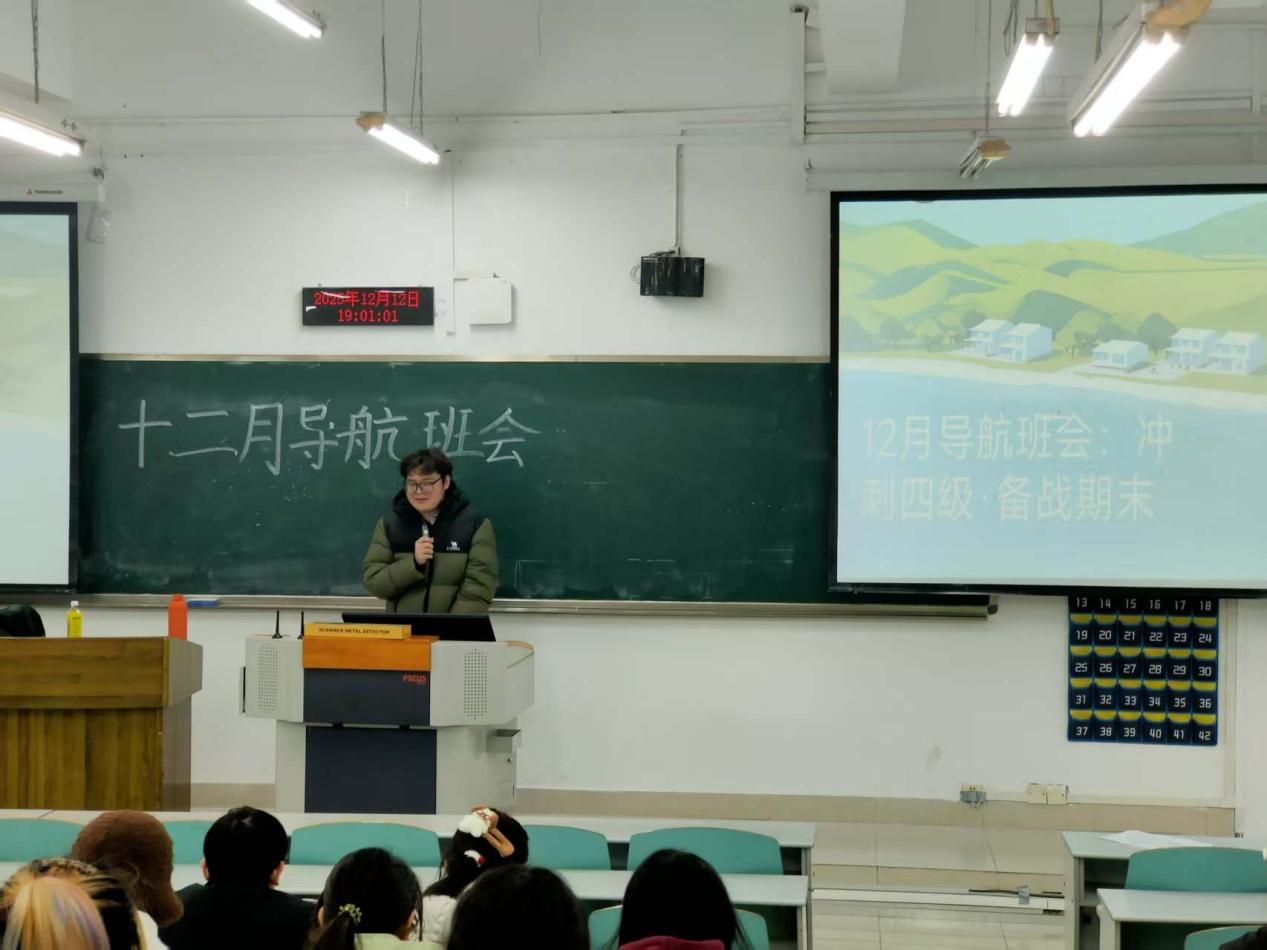 25级大数据管理与应用一、二班于12月12日召开导航班会,何春梅学姐以互动抽问开场,聚焦四级与期末备考核心。四级备考方面,详解考前准备、必备物品清单与考场技巧,强调睡眠保障、时间分配及听力、阅读、写作的应试要点。期末考试指导中,针对高数、会计、管理学等七门核心课程,从重要性、学习方法、效果检验三维拆解,建议立足课本例题、总结解题模板、每周模拟查漏补缺,会后还分享了含重难点标注、资料推荐的详细备考攻略。