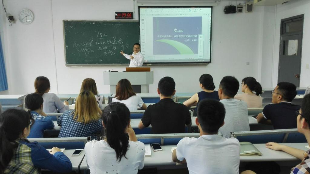 为拓展学员对于电子商务与物流发展的认识及视野,学院特聘请重庆乐邮送供应链管理有限公司总经理刘刚先生为公司“医流巴巴卓越电子商务人才培养实验班”授课,讲授《基于电商仓配一体化的供应链管理浅谈》。