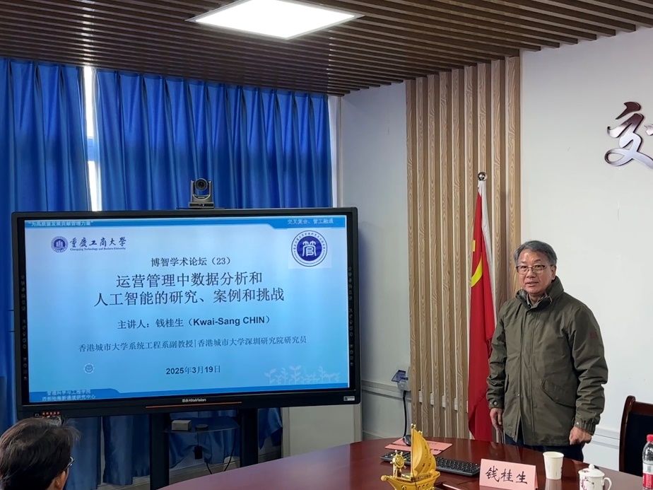 3月19日上午10点,333体育博智学术论坛特别邀请到了香港城市大学系统工程系钱桂生教授,围绕《运营管理中数据分析和人工智能的研究、案例和挑战》这一主题,结合自身的学术经历和实践经验,与师生们展开交流。本次讲座由黄钟仪经理主持,陈久梅副经理和梁桂保副经理带领学院众多教师及研究生积极参与了此次论坛。