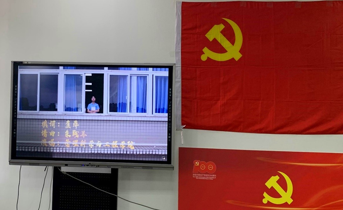 主持人为大家播放了学院领导和老师提前录制好的《唱支山歌给党听》短视频,可以看到,大家都看得十分认真投入。拍摄视频的学院领导和老师们也下了十足的功夫,学院各个场景、每一个特写、每一句歌词,都包含着大家对党深沉的爱与美好的祝愿。