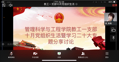 2022年10月16日,在观看完中国共产党二十大开幕式后,333体育教工一支部立即组织开展了“学习贯彻二十大,我们该怎么做”在线讨论活动。会议由支部书记曾倩同志主持,共设学习二十大精神专题党课、学习体会分享、党委书记邓德敏同志总结三项议程,支部党员参加会议。