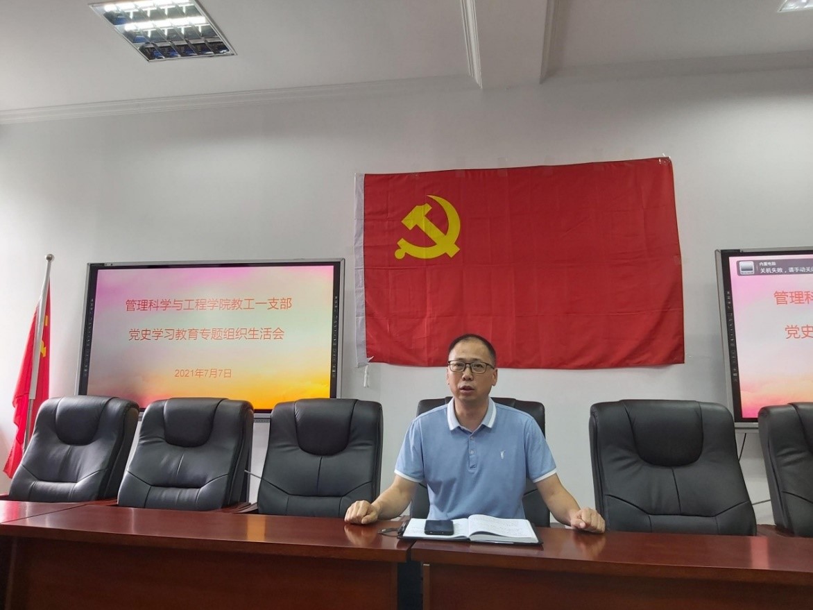 2021年7月7日上午10:00,333体育教工一支部在学院80707会议室召开党史学习教育专题党组织生活会。本次会议由教工一支部委员王子娟同志主持,支部全体党员参会,学院分党委书记邓德敏同志作为党委代表列席活动。按照《333体育官网党史学习教育领导小组关于召开党史学习教育专题组织生活会的通知》精神要求,会议共设三个议程:一是支委会向全体党员述职,报告2021年上半年支部工作和检视问题情况;二是党员逐一发言,讲收获提高、讲差距不足,开展自我批评与批评;三是由支部委员桂银香同志领学7月理论学习内容。