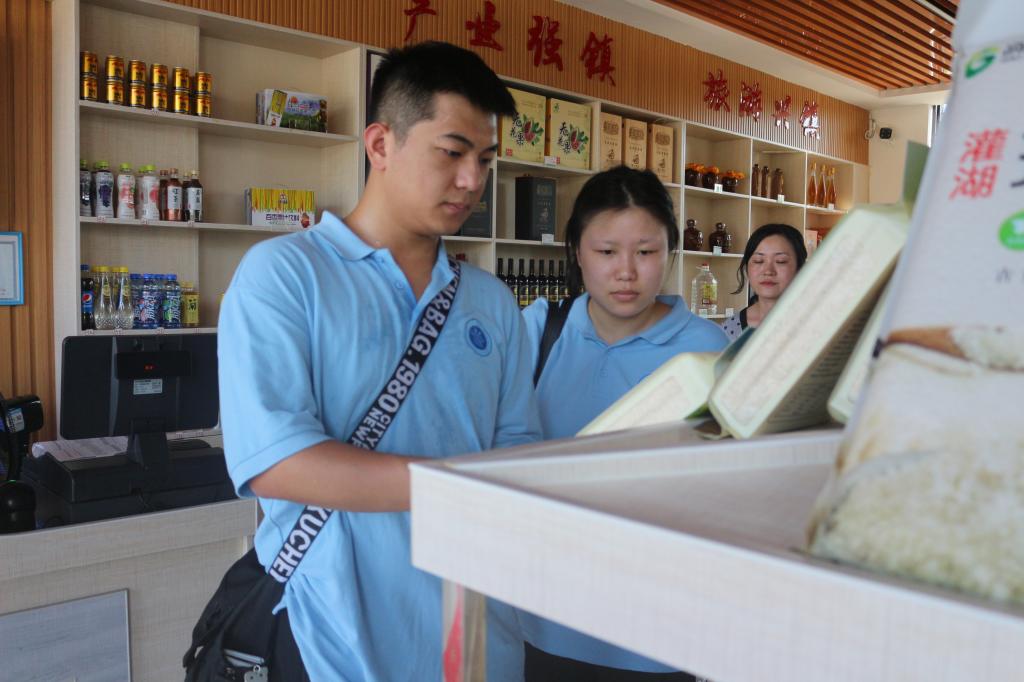 在马灌镇电商中心,由驻村书记杨徐勇带领,师生们了解到马灌镇培育打造了“管得宽”无花果系列产品、“佰忠源”竹笋产品、“桑之恋”桑叶加工食品、“古唐农”红糖、“饭飘香”大米等近50余种本土特色品牌。这些产品是马灌镇因地制宜发展笋竹、无花果、大米等种植基础上,逐步培育而来,每个产品均有独特的品牌文化和品牌包装。这让前来参观的服务队师生赞叹不已。