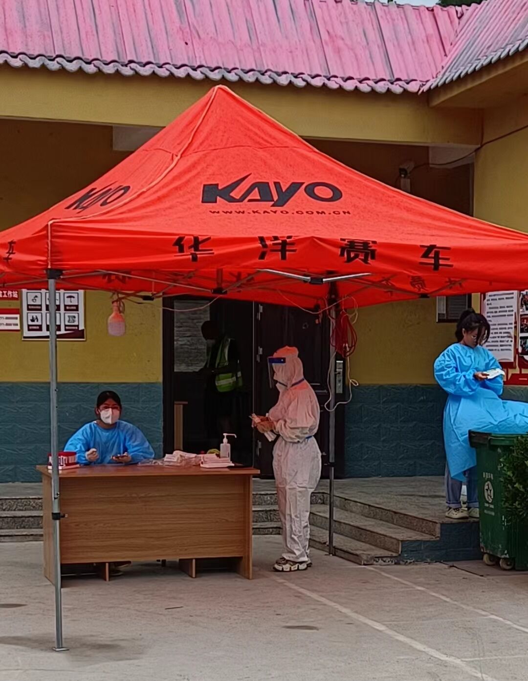作为志愿者,何佳彤同学主要工作是登记核酸检测人员信息以及深入到家家户户采集居家隔离人员信息。披星戴月,早起晚眠,烈日下为村民登记信息,协助医护人员与村委会干部走遍村庄,只为让每位群众的核酸检测记录在册,防护服下是被汗浸透的衣衫,是不屈服于疫情的抗争之心。
