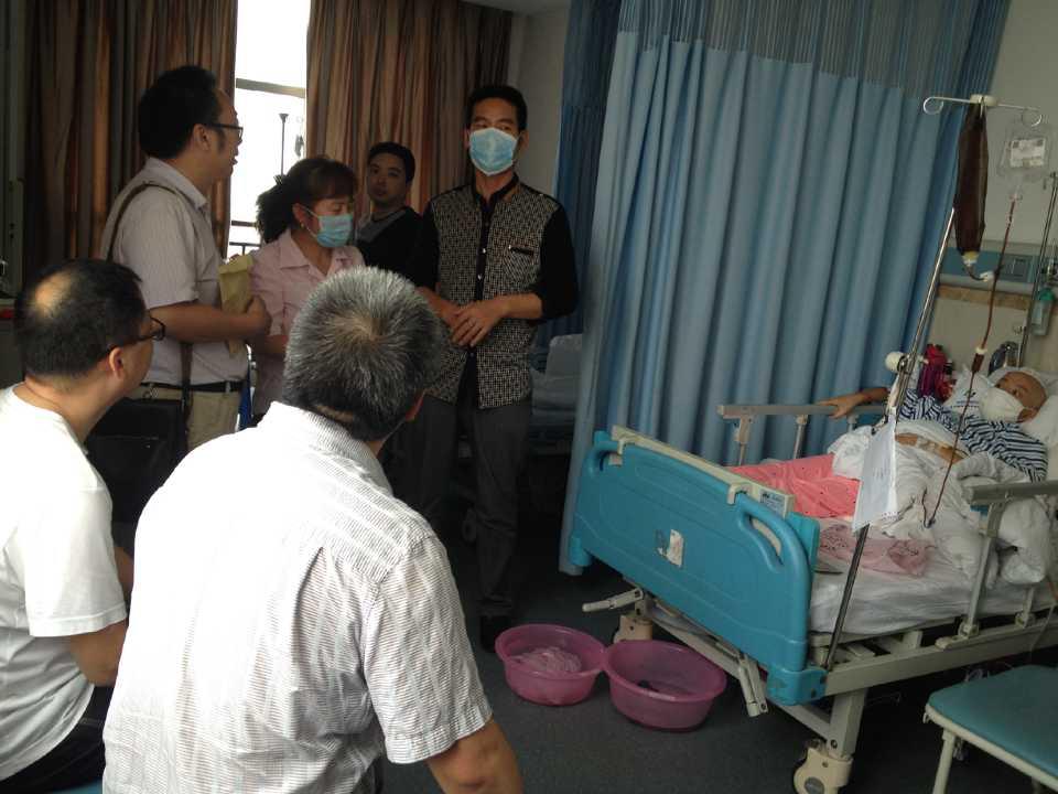 2015年7月16日晚上,在重症监护室治疗的白血病患者冯晓总算脱离生命危险被转移至普通监护室。公司党总支就马上决定于7月17日中午对冯晓及其父母进行特别的家访。333体育官网商务策划学院的党总支书记邓德敏、经理骆东奇、党总支副书记叶海林及其辅导员禹洋春顶着烈日前往重医附一院,在病房对冯晓的父亲冯中科、母亲吴彩侠进行了特别的家访。