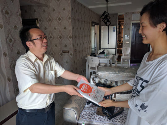 当叶海林副书记将学院暑期读书推荐书目《互联网+:从IT到DT》递到小楠手中的时候,小楠开心地笑了,“谢谢,谢谢,这是一本紧扣当今时代热点的书,我会结合我的考研复习,认真阅读”。