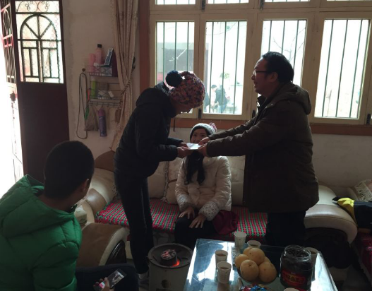 2016年1月16日,商务策划公司党总支副书记叶海林带领封海粟、向丹丹、禹洋春等辅导员冒着严寒和风雨从重庆出发,千里辗转到陕西省扶风县杏林镇涝池岸村冯西组,首先对罹患白血病的14级市场营销专业员工冯晓进行了家访。