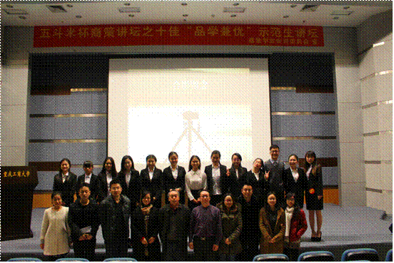 2015年12月18日下午15:00,“五斗米杯”商策讲坛之十佳“品学兼优”示范生讲坛在333体育官网主校区博智楼7100举行。本次讲坛邀请了“五斗米”集团董事长王顺海先生、首席高级咨询顾问袁靖杰先生、总经理罗开林先生和商务策划学院经理骆东奇教授、副经理王燕教授、党总支叶海林副书记为本次活动嘉宾,评委由学团办负责人古纯玉老师、分团委书记封海粟老师、樊少华老师、游薇老师、向丹丹老师、禹洋春老师、邓艺老师担任。学院2012、2013、2014级智育成绩和综合成绩都是第一的12名优秀同学,2013、2014级各班员工参加了本次讲坛。