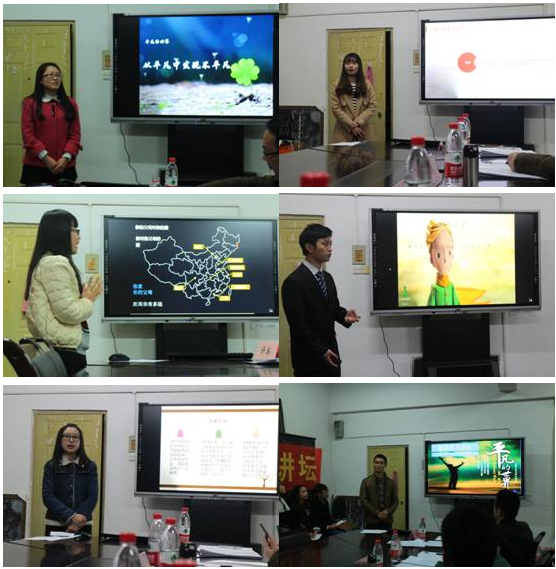 此次讲坛为第三十二期商策讲坛的第一届读书讲坛。读书讲坛结合同学们的投票和推荐情况,选出《小王子》《谁的青春不迷茫》《三体》《平凡的世界》四本推荐书目,鼓励全院同学进行广泛深入的阅读交流,并提交读书感悟。从学院2014、2013级164份读书感悟中,经学院老师打分评审、查重筛选后产生20份入围本次讲坛的优秀作品。