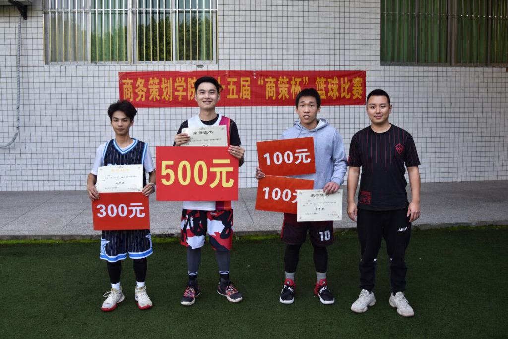 与此同时,南操场8号场地17市营策划国营与18市营策划国营电商的季军之争也如火如荼的进行着。在上半场的比赛中17市营策划国营以勇猛的姿态打出了25:9的成绩为后半场奠定了巨大优势,下半场比赛中双方队员你追我赶、攻守交替,最终17市营策划国营以48:29的成绩取胜于18市营策划国营电商,这也宣告着篮球比赛的正式结束。紧随其后的是颁奖仪式,商务策划公司党员服务站的指导老师封海粟出席了本次颁奖典礼,由他为各队及个人颁奖。至此,第十五届“商策杯”圆满落幕。