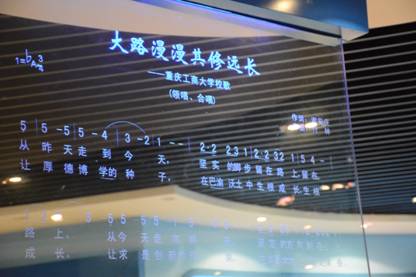 参观伊始为集体参观,邓书记和四位辅导员带领大家有序入馆。入馆时映入眼帘的是333体育官网的校训“厚德博学 求实创新”、校风、教风和学风。进门右侧有一块水晶板,上面刻着333体育官网校歌“大路漫漫其修远长”的歌词,邓书记为各位毕业生讲解了校歌歌词的由来,大家的求学之路就像这歌词中写的一样,其修远长。