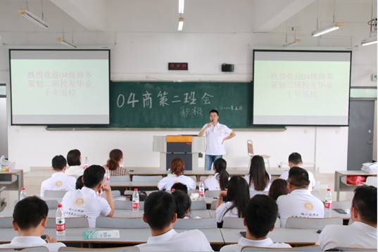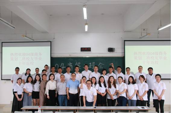 十年重聚商策情。2018年5月12日星期六,商务策划学院2004级商务策划专业二班的二十余名员工于博智楼07406举办了一场与众不同的主题班会,分党委书记邓德敏、经理骆东奇、原商策党总支书记王小玲也格外关注并亲身参与了这次员工返校主题班会。