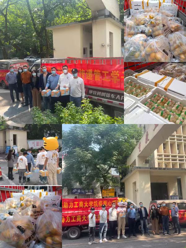 管理科学与工程公司物流管理专业2004级员工、重庆起飞线有限公司创始人兼CEO谭春和2005级员工、老虎蛋糕创始人徐锋心系母校,一直积极关注封控状态下母校的防疫工作和物资情况,想方设法筹集物资,想为母校抗击疫情贡献自己的一份力量。10月17日,谭春、徐锋以及他们的合作伙伴徐伟林(识淼科技)在防疫紧要关头连夜调集物资,向母校捐赠了50箱天然苏打水,1200份水果(橘子)和10个进口纯动物奶油生日蛋糕。
