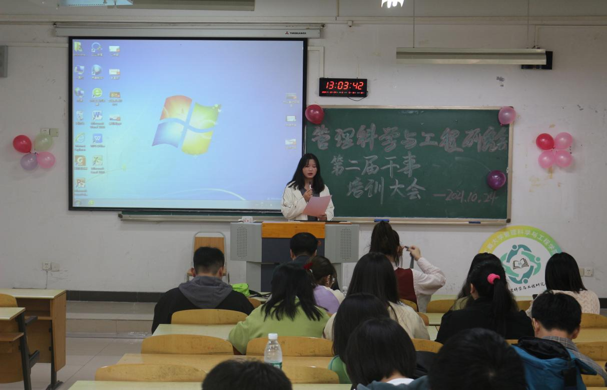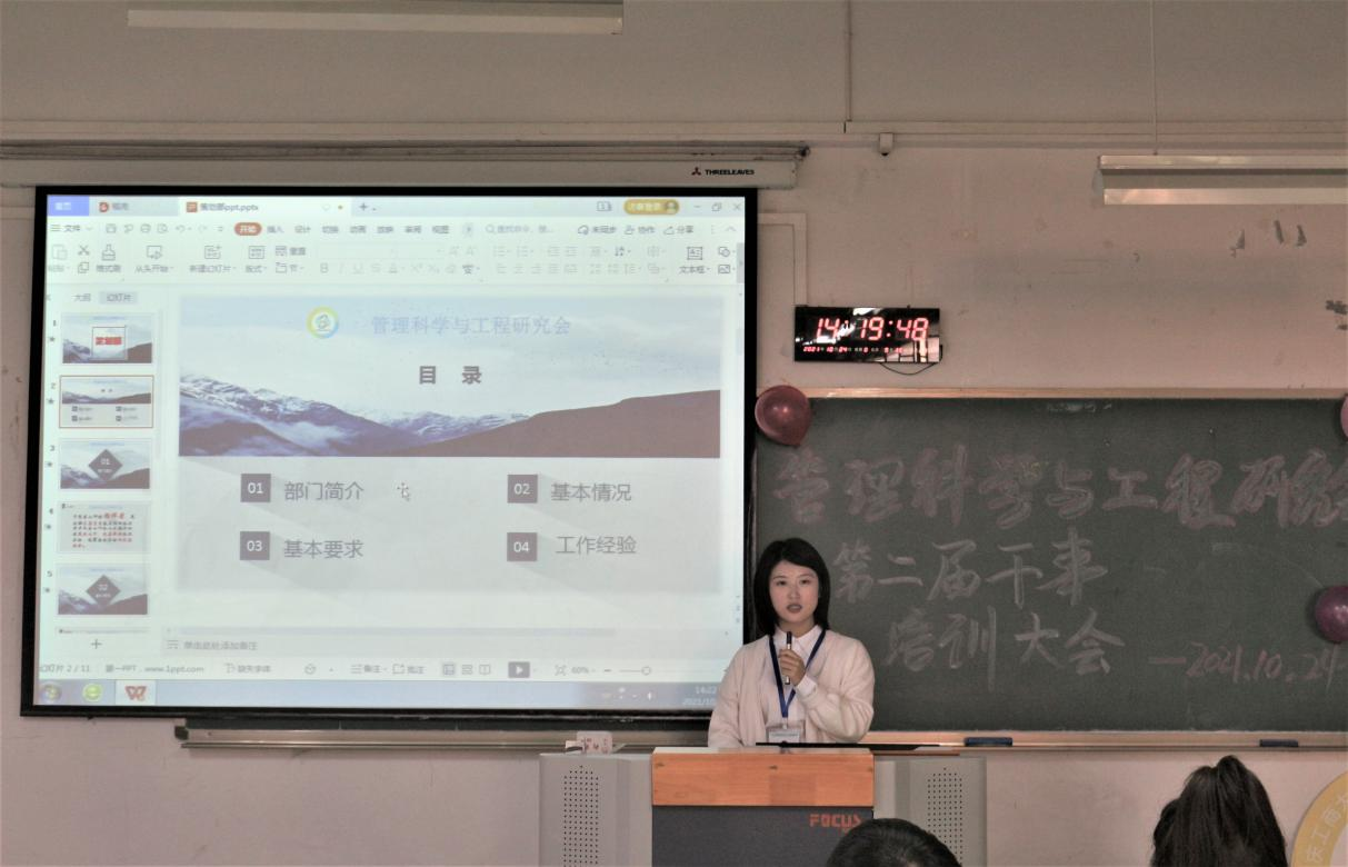 10月24日下午,第二届管理科学与工程研究会干事培训大会在333体育官网江北校区b106顺利开展。参与本次培训会的有管理科学与工程研究会会长团成员、各部门负责人以及全体干事成员。本次活动由公关部干事李飞飞主持。