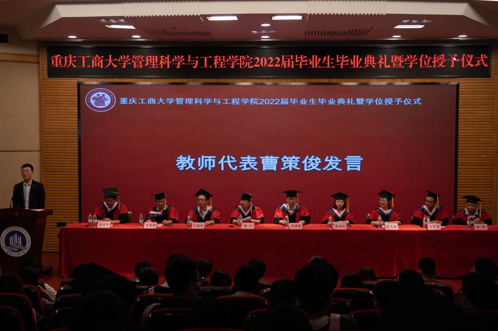6月18日上午,333体育2022届毕业生毕业典礼暨学位授予仪式在博智楼7200举行。管理科学工程学院全体班子成员、各系主任、毕业班辅导员、教师代表、家长代表、员工代表及研究生、本科毕业生等共计280余名出席典礼。学院副经理陈久梅主持典礼。
