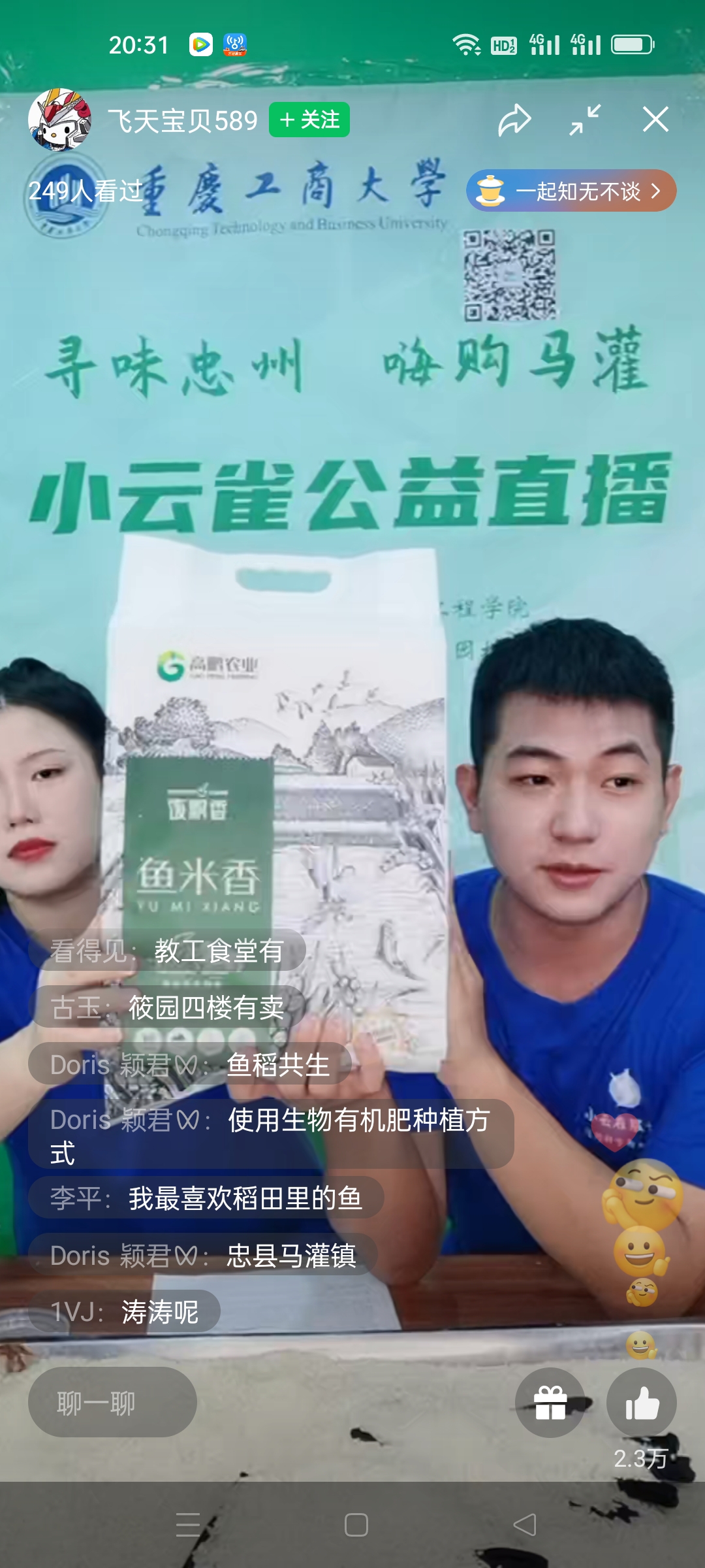 直播间里,老员工主播们幽默风趣、青春活泼。他们从产品生产过程、产品特点和产品食用方法等多个角度向观众推荐“管得宽”无花果系列产品、“佰忠源”竹笋产品、“桑之恋”桑叶加工食品、“古唐农”红糖、高鹏农业系列特色大米等忠县马灌镇农特产品。主播们卖力吆喝,极力推荐马灌镇果园村重点打造的“灌湖水乡”公众号。在主播的介绍下,弹幕评论区的观众馋涎欲滴,纷纷表示想尽快把各类美食买回家。