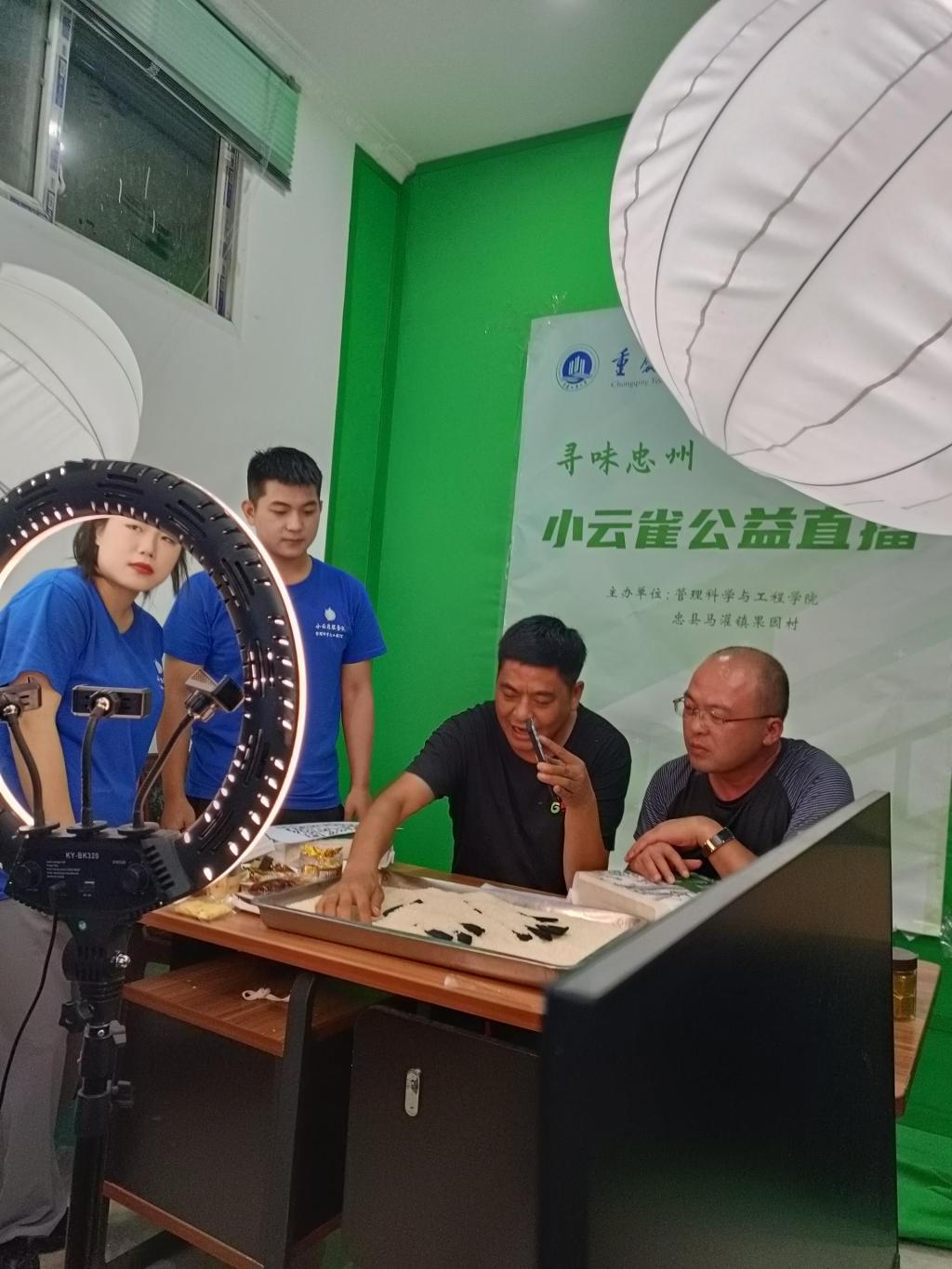 在田间地头的多次调研和直播方案的反复修改的基础上,7月7日,333体育小云雀服务队的老员工们精心准备的“寻味忠州,嗨购马灌”公益直播在忠县马灌镇果园村高鹏农业直播间开播。