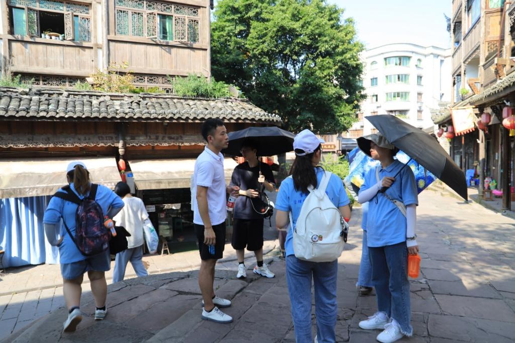 从住地出发,带队老师和同学们沿着古镇会龙街→ 火神庙街→ 十字街沿途查看古建筑风貌、与临街店家交谈和观察景区人流状况。经过约4小时的实地走访,大家基本掌握了古镇景点分布、古建风貌现状以及主要民俗特色等基本情况。为了提高效率,老师和同学们边走边思考,边走边讨论,进一步明确了古建改造与开发调查、民俗特色宣传和红色文化宣传三个子主题的社会实践目标、调查宣传对象和预期实现成果。