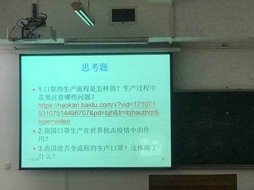课程开始,周继祥老师介绍了车间作业管理的工作内容、车间作业管理的步骤和车间作业管理的层次及相关任务,然后通过播放口罩生产的视频让员工对口罩的生产有了一定的了解。在此基础上,周老师抛出了口罩的生产流程是怎样的?口罩生产过程中需要注意哪些问题?在给予同学们短暂思考时间之后,周老师对本问题进行了解答。之后,周老师结合当前国际国内新冠疫情的现状,讲解了我国口罩生产在世界抗击新冠疫情中起到的积极作用,我国制造业对世界经济的提振作用。最后,周老师结合我国产业链、供应链的实际,留下了“我国能否全流程的生产口罩?这体现了什么?”的问题。本次公开课让同学们进一步了解了我国对世界抗击新冠疫情、对世界经济发展做出的重大贡献,进一步了解了我们制造业企业发展的现状,我国比较完整的工业门类、产业链、供应链等。