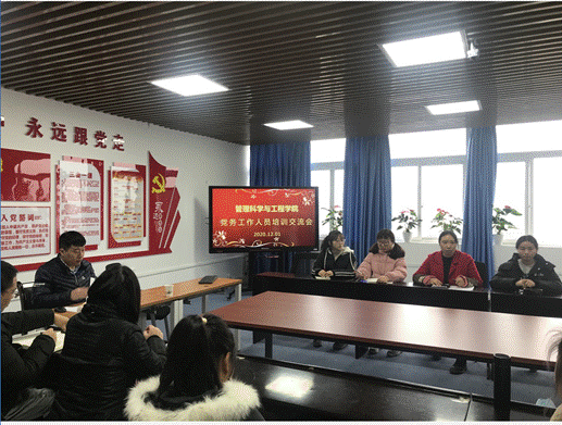为了加强公司党支部规范化建设,不断提高党支部建设和党员发展质量,12月1日学院分党委在启智楼709会议室组织召开了2020年公司党务工作人员培训交流会。党委组织部组织科科长崔智勇和公司党务工作人员参加了会议。会议由综合办副主任彭洁主持。