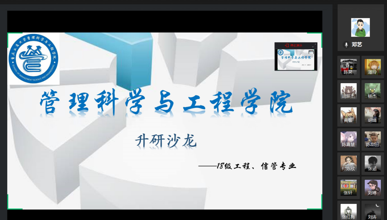 本次沙龙将在信管、工程考研的同学中搭建起一个学习交流升研经验和技巧的平台,激发同学们考研的信心和热情。大三正处于抉择的关键时期,而优秀员工的考研分享,也为18信管、工程的学子们点亮了未来的路灯,使考研学习坚定了信心、明确了方向。