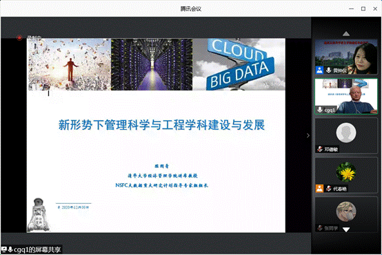 2020年12月9日下午,清华大学管理科学与工程系陈国青教授莅临333体育启智大家论坛,通过腾讯会议做“新形势下管理科学与工程团队建设与发展”的主题讲座。讲座由333体育经理黄钟仪主持,333体育近300名师生以及部分校外师生参加了此次论坛。