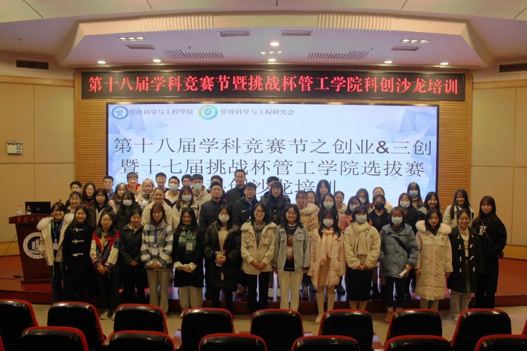 在培训结束后,各参赛队伍积极提问,就评分标准、比赛的侧重点、怎样让作品更出彩、效果如何展现等问题对老师进行了提问,龙跃老师也针对同学们不同的疑问做出了详细的回答。同学们在得到老师的解答后一定颇有收获。最后参与此次活动的老师、同学以及工作人员合影留恋,至此,此次创业&三创暨第十七届挑战杯管工学院选拔赛科创沙龙活动圆满落下帷幕。
