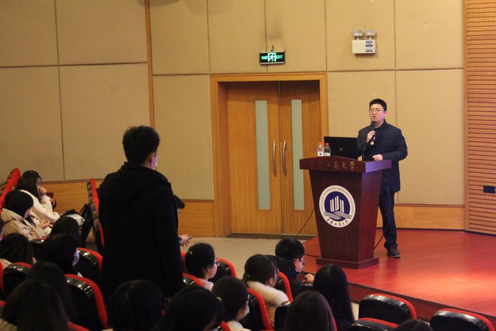 在主持人的开场白后,龙跃老师首先讲了学科竞赛的“3个总结”,认为学科竞赛是为未来创新创业做准备,是为未来提供条件。而后,龙跃老师又从学科竞赛赛事总结、选题、组织、撰写和参赛总结、经验总结和建议三个方面来进行了讲解,并告诉同学们应该选择有含金量的比赛参加,若参赛过多易导致精力分散。其次,龙跃老师以“6个1”的方式提出了参加比赛的意义:是一次自我展示,一次自我包装,是一次学术(就业、创业)活动的演练,一次对所学知识、技能的检验,一次对作品的设计与检验,是一次自我进化的再学习、再提升。紧接着,龙跃老师又提出了核心要点:选题、团队、效果、路演。分别从四个方面总结,认为团队选择性要强、互补性要强,题目新颖文本精致,路演需要有时间意识、有眼神与肢体的互动使得显示度高,而不是照本宣科。而很多团队都没有注意到这些,导致部分团队存在选题陈旧、作品效果不明显、路演效果差或根本没有团队等问题。同时,龙跃老师分享了以往优秀作品供同学们学习。