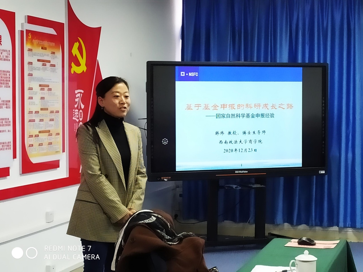 为更好助力老师们申报2021国家自然科学基金项目,333体育特邀西南政法大学商学院经理、博士生导师、国家自科基金重点项目获得者韩炜教授于2020年12月24日上午在学院80709会议室举行了国家自然科学基金申报经验分享会,来自333体育、国合基地、数学与统计学院等共计40余师生参加了分享会。