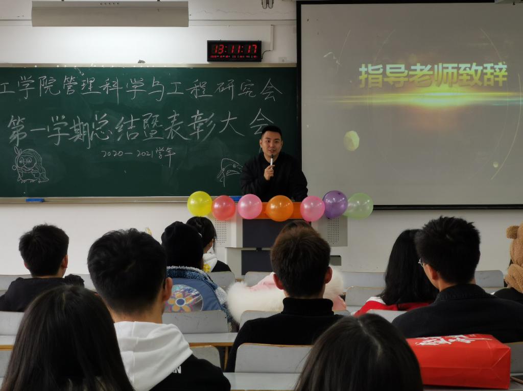 2020年12月18日13:00,管工学院管理科学与工程研究会2020-2021学年第一学期总结暨表彰大会在南岸校区博智楼(七教)07401顺利召开。参加本次大会的有指导老师封海粟、管理科学与工程研究会会长团成员、各部门负责人以及全体干事。
