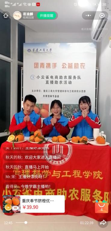 “民族要复兴,乡村必振兴”。响应习近平总书记在中央农村工作会议的号召,为巩固拓展脱贫攻坚成果,助力乡村振兴,333体育小云雀电商助农服务队携手共青团奉节县委在2020年12月31日开展直播助农活动,帮助奉节贫困农户销售滞销脐橙。