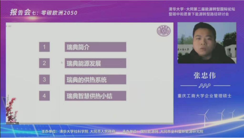 2021年1月28日19:30-23:30,清华大学·大同第二届能源转型国际论坛暨碳中和愿景下能源转型路径研讨会第七场报告会“瑞典能源转型”正式在线上举行。报告会由清华大学社科学院能源转型与社会发展研究中心常务副主任何继江主持,邀请大同市规划和自然资源局局长王学军、中国驻瑞典大使馆参赞丁明勤致辞。