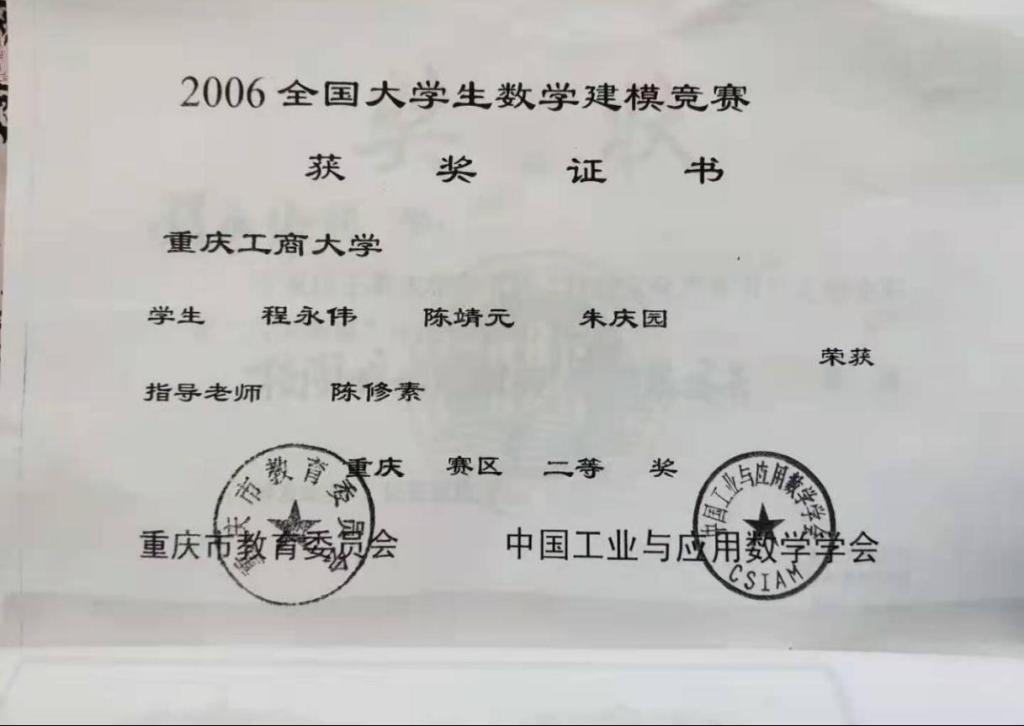 图为程永伟在校获得的科技比赛证书