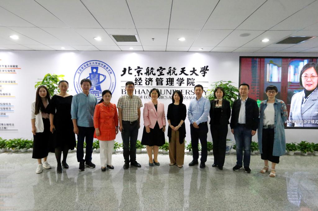 2021年5月27日下午,学院经理黄钟仪、副经理詹川、工程中心常务副主任代春艳、电子商务系主任唐国锋及信管系梅远飞博士一行前往北京航空航天大学经管学院调研,经管学院范英经理、郑海涛副经理、周宁教授、实验中心主任韩小汀、MEM教育中心副主任程玉辉、品牌办副主任胡鹤参加接待。