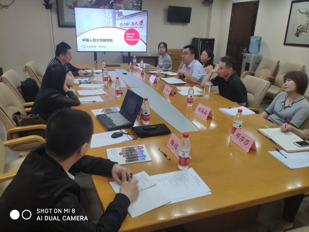 2021年5月28日上午,学院经理黄钟仪、副经理詹川、工程中心常务副主任代春艳、电子商务系主任唐国锋及信管系梅远飞博士一行前往中国人民大学商学院调研,人大商学院经理毛基业、教务办主任李宏、管理科学系副主任张瑾、人力资源办公室主任赵晶晶、团队建设与科研办公室主任邓莎莎、教务办公室硕博项目主管马玉阳参加接待。