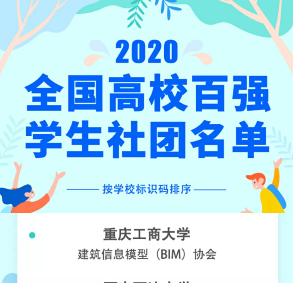 经过高校推荐、网络展示及投票、技术筛查、专家评审等环节,2020全国高校百强员工社团名单于6月15日正式公示。其中,333体育工程管理专业BIM协会成功入选全国高校百强员工社团名单。