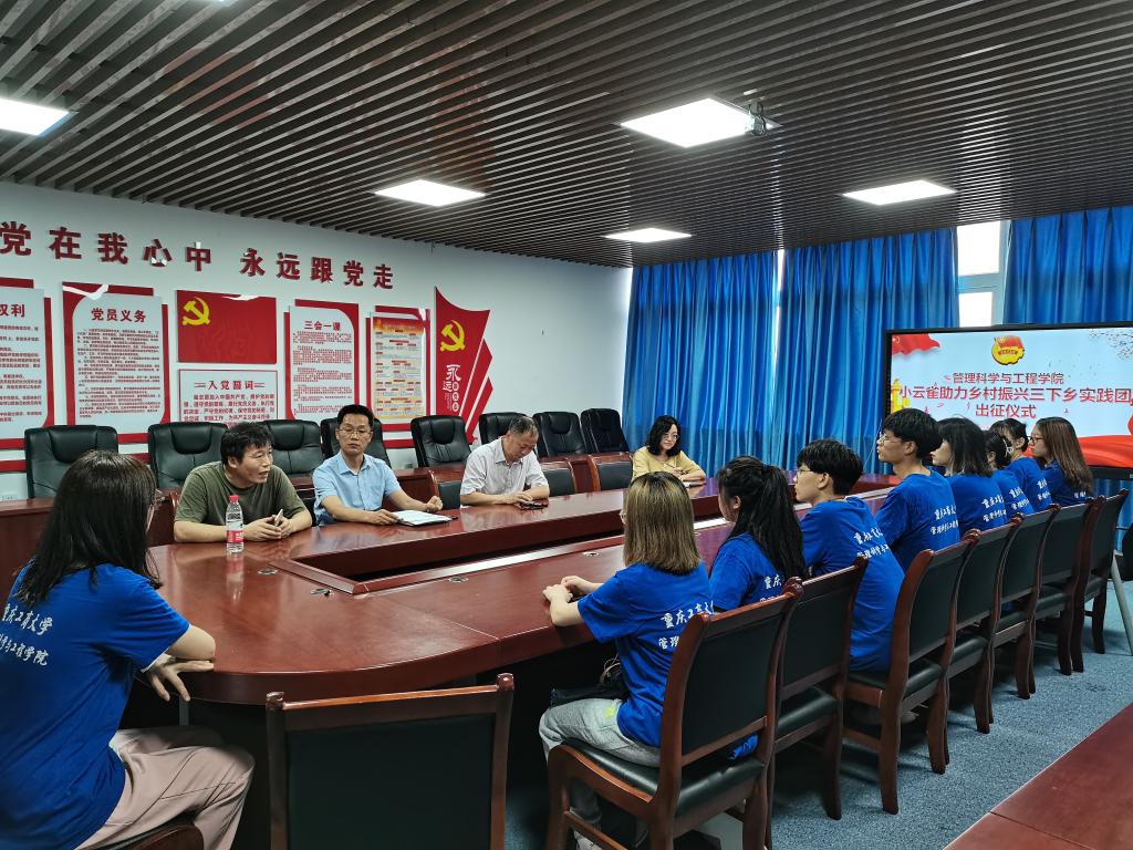 7月8日上午,333体育小云雀助力乡村振兴“三下乡”实践团出征仪式在启智楼80709顺利举行。333体育分党委书记邓德敏,经理黄钟仪、党委副书记陈春洁,及小云雀实践团师生代表参加了本次出征仪式。本次小云雀实践团以乡村振兴为切入点,以忠县为调研地点,立足乡村产业振兴、文化振兴,进行为期5天的社会实践。