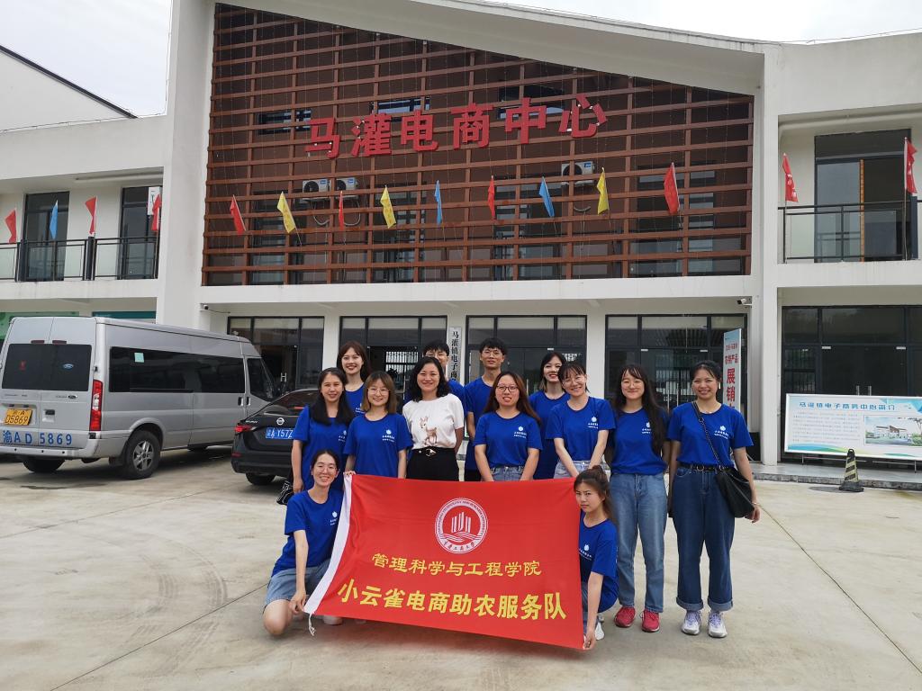 (图为小云雀实践团在马灌电商中心前合影)