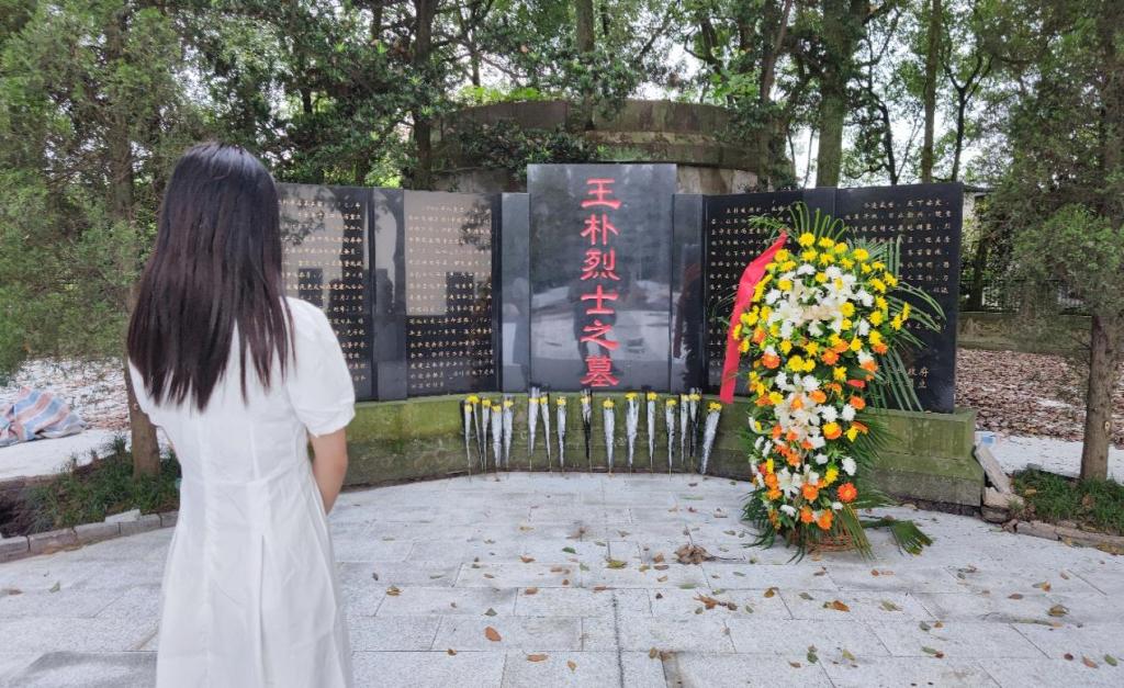 王朴毕业于复旦大学,在党的号召下回到家乡,他的一生都在为共产主义事业而奋斗。他在母亲金永华的资助下创建学校,成为革命据点,培养了数百名新中国建设的骨干。选择王朴烈士陵园作为学史明理的实践地点,是因为李慧琳同学毕业于王朴创建的志达中学,也就是现在的“王朴中学”。李慧琳感到庆幸与骄傲,脚下的土地是让她每夜能安心入眠的保障,当五星红旗在蓝天飘扬,无论她身居何方,李慧琳知道她的背后有一个强大的国家正保护着她。