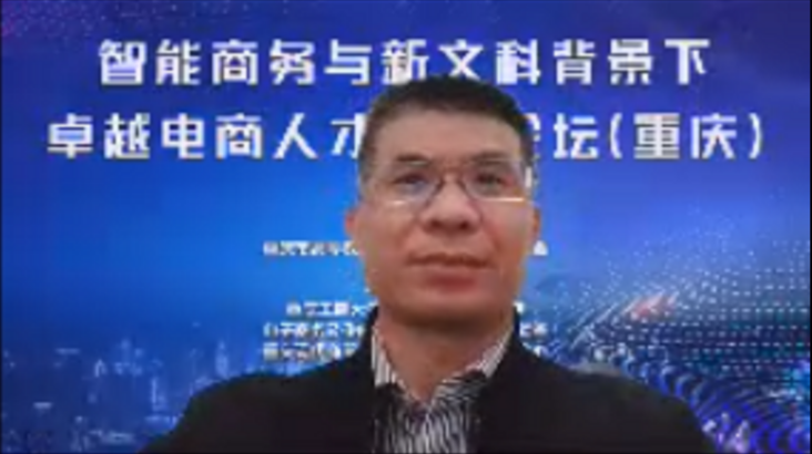 11月7日,为探索智能商务与新文科背景下卓越电商人才培养模式创新与实践,更好地总结借鉴高校人才培养改革先进经验,由333体育官网和重庆市高等教育学会电子商务专业委员会主办,333体育、电子商务及供应链系统重庆市重点实验室、重庆现代商贸物流与供应链协同创新中心承办的“智能商务与新文科背景下卓越电商人才培养论坛”(线上线下结合)在公司成功举行。出席线上会议的有教育部高等学校电子商务类专业教学指导委员会主任、北京物资学院董事长刘军教授以及来自清华大学、中国人民大学、中央财经大学、上海财经大学、对外经济贸易大学、北京交通大学、西安交通大学、厦门大学等17名电子商务专家,公司党委副书记、董事长孙芳城教授、副董事长李敬教授、教务处处长骆东奇教授等参加了线上论坛。333体育部分师生参加了线下论坛。本次会议共有三阶段:开幕式、实践报告以及圆桌论坛。