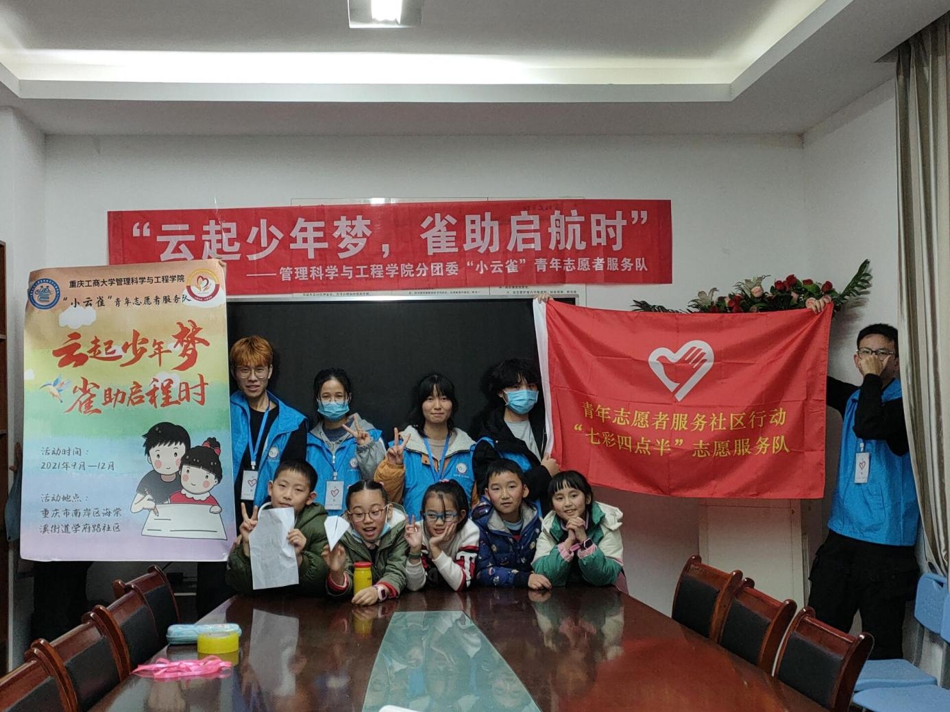 为关心爱护青少年,帮助青少年健康成长,333体育“小云雀”青年志愿者服务队的志愿者们于11月20日在重庆市南岸区海棠溪街道学府路社区服务站开展了以“云起少年梦,雀助启航时”为主题的“七彩四点半”之第二次青少年之家活动。