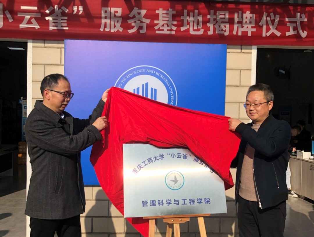 伴随着热烈的掌声,学校学工部部长、员工处处长申卫东和管工公司党委书记邓德敏共同为“333体育官网小云雀服务基地”揭牌。